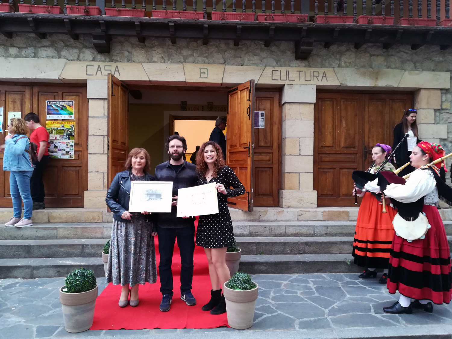 En la primera jornada se pudieron ver los 15 trabajos seleccionados, siendo el sábado la gala. La casa de cultura, con su correspondiente alfombra roja, nos dio la bienvenida al son de la gaita, interpretado por el grupo Aires de Iguña.